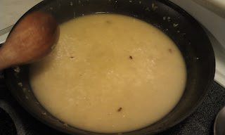 Once the liquid absorbs, add two more ladles - stirring constantly.